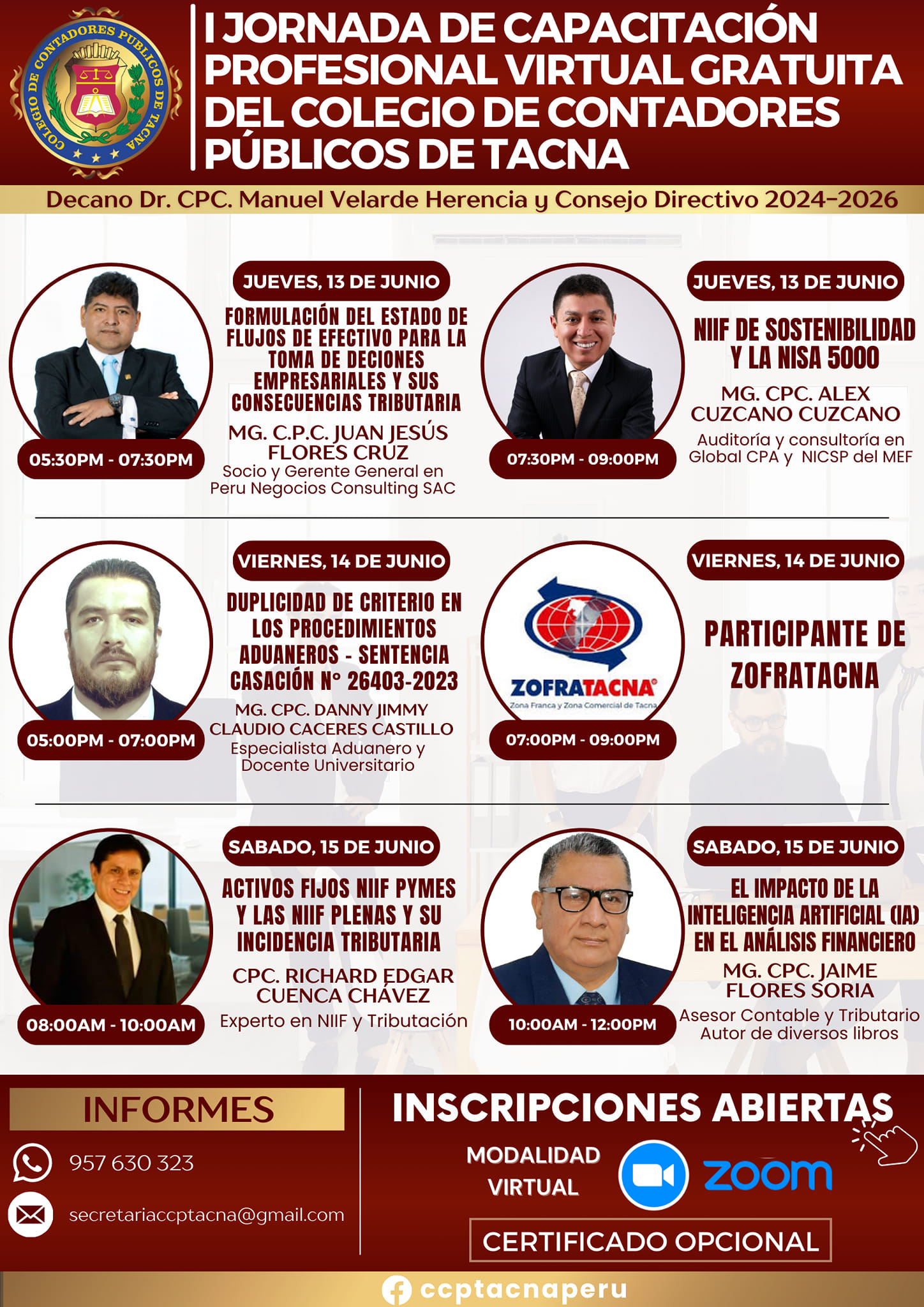 𝗜 𝗝𝗢𝗥𝗡𝗔𝗗𝗔 𝗗𝗘 𝗖𝗔𝗣𝗔𝗖𝗜𝗧𝗔𝗖𝗜𝗢́𝗡 𝗣𝗥𝗢𝗙𝗘𝗦𝗜𝗢𝗡𝗔𝗟 𝗩𝗜𝗥𝗧𝗨𝗔𝗟 𝗚𝗥𝗔𝗧𝗨𝗜𝗧𝗔 𝗗𝗘𝗟 𝗖𝗢𝗟𝗘𝗚𝗜𝗢 𝗗𝗘 𝗖𝗢𝗡𝗧𝗔𝗗𝗢𝗥𝗘𝗦 𝗣𝗨́𝗕𝗟𝗜𝗖𝗢𝗦 𝗗𝗘 𝗧𝗔𝗖𝗡𝗔" (𝟭𝟯,𝟭𝟰 𝗬 𝟭𝟱 𝗗𝗘 𝗝𝗨𝗡𝗜𝗢 𝗗𝗘 𝟮𝟬𝟮𝟰)