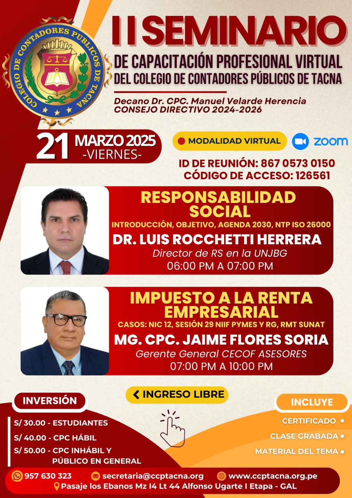 𝗜𝗜 𝗦𝗲𝗺𝗶𝗻𝗮𝗿𝗶𝗼 𝗱𝗲 𝗖𝗮𝗽𝗮𝗰𝗶𝘁𝗮𝗰𝗶𝗼́𝗻 𝗣𝗿𝗼𝗳𝗲𝘀𝗶𝗼𝗻𝗮𝗹 𝗩𝗶𝗿𝘁𝘂𝗮𝗹 𝗖𝗼𝗹𝗲𝗴𝗶𝗼 𝗱𝗲 𝗖𝗼𝗻𝘁𝗮𝗱𝗼𝗿𝗲𝘀 𝗣𝘂́𝗯𝗹𝗶𝗰𝗼𝘀 𝗱𝗲 𝗧𝗮𝗰𝗻𝗮 👨🏻💻📊